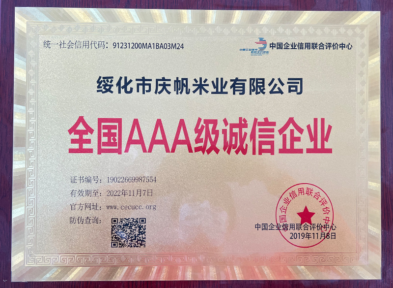 關(guān)于慶帆米業(yè) 客戶至上 品質(zhì)優(yōu)良 您現(xiàn)在的位置:網(wǎng)站首頁 > 關(guān)于我們 > 資質(zhì)榮譽 企業(yè)文化 CORPORATE CULTURE 資質(zhì)榮譽 HONOR 領(lǐng)導(dǎo)致辭 LEADER’S SPEECH 公司簡介 COMPANY PROFILE 黑龍江省質(zhì)量品牌雙保障信用認(rèn)證企業(yè) 放心糧油示范加工企業(yè) 綠色品牌 中國綠色“健康米” 全國AAA級誠信企業(yè) 中國產(chǎn)品質(zhì)量檢測標(biāo)準(zhǔn)合格企業(yè) 共15條記錄 當(dāng)前為第2頁/共3頁上一頁123下一頁